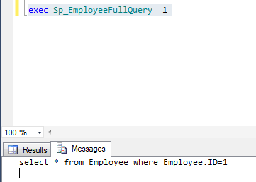 - SET @FullQuery='select * from Employee where Employee.ID=' + CAST(@ID AS VARCHAR) + ''
