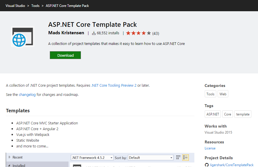 You should find new Asp.Net Core Angular 2 Starter Application (.Net Core)