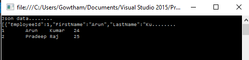 - Console.WriteLine("{0}\t{1}\t{2}\t{3}", Emp.EmployeeId, Emp.FirstName, Emp.LastName, Emp.Age);