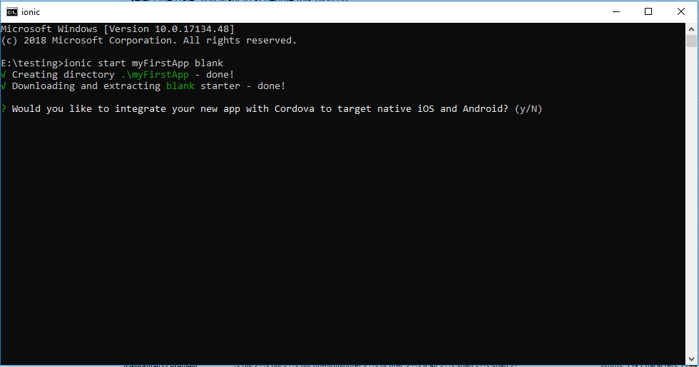 - ionic start myFirstApp blank