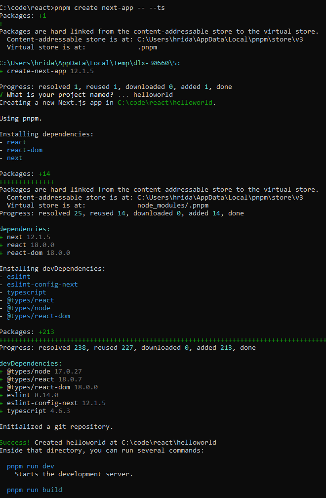 After you have created the app, navigate into the folder and run ” yarn install”.