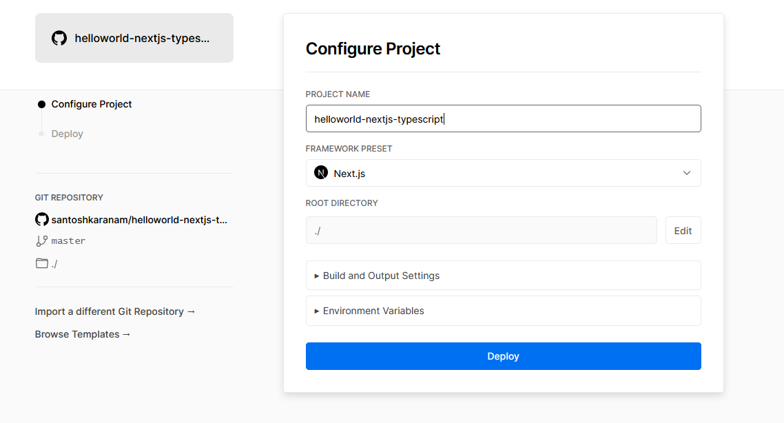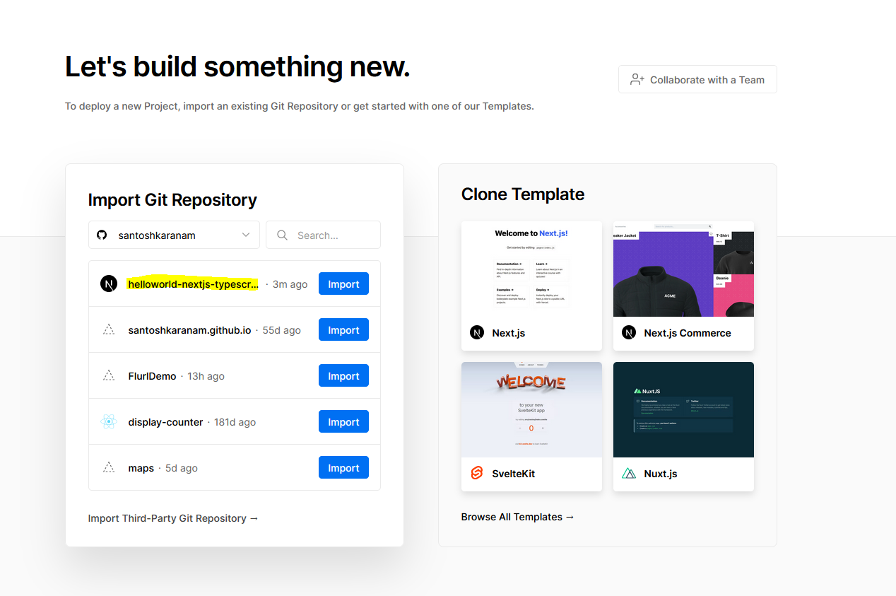 You can instantly deploy the above starter application into vercel free of cost. You need to create an account (no credit card required) in Vercel. Click on the above “Deploy” button