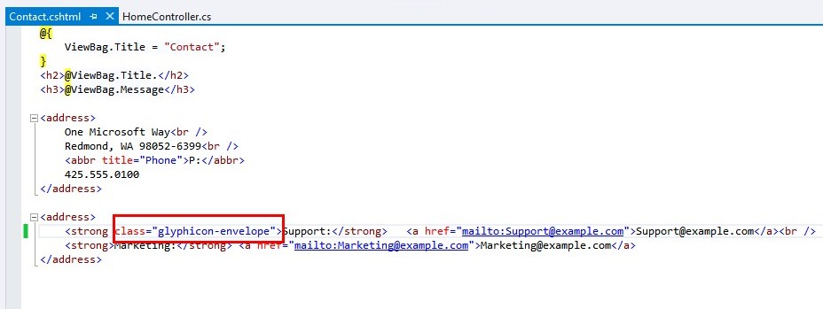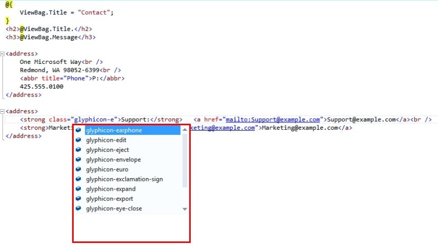 So, go to Contact View file and write the code for glyphicons.