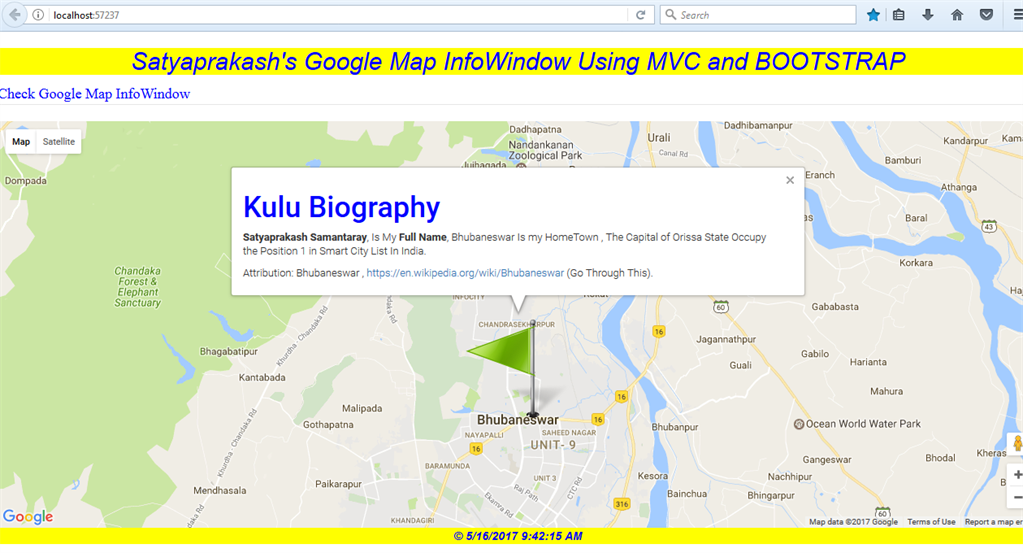 - ViewBag.Title = "Satyaprakash Google Map InfoWindow";