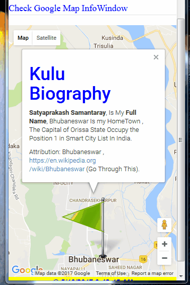 - <legend style="font-family: Arial Black; color: blue; font-size: large;">Check Google Map InfoWindow</legend>
