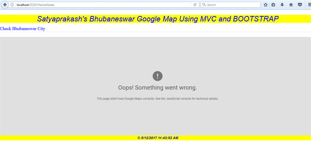 If there is any invalid Google API key or key is empty, then the page will looks, as shown below.