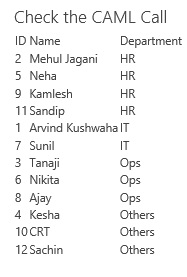 -         camlhtml += "<tr><td>" + value.ID + "</td><td>" + value.Name + "</td><td>" + value.Department + "</td></tr>"