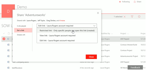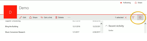 Item Level gives details like Recent Activities, History, version, Access available members, quick preview available when clicked on the 'Open the details pane' option.