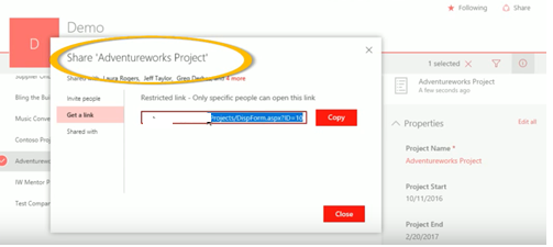 The copy link option is available to generate an ID-free URL, reducing the complexity.