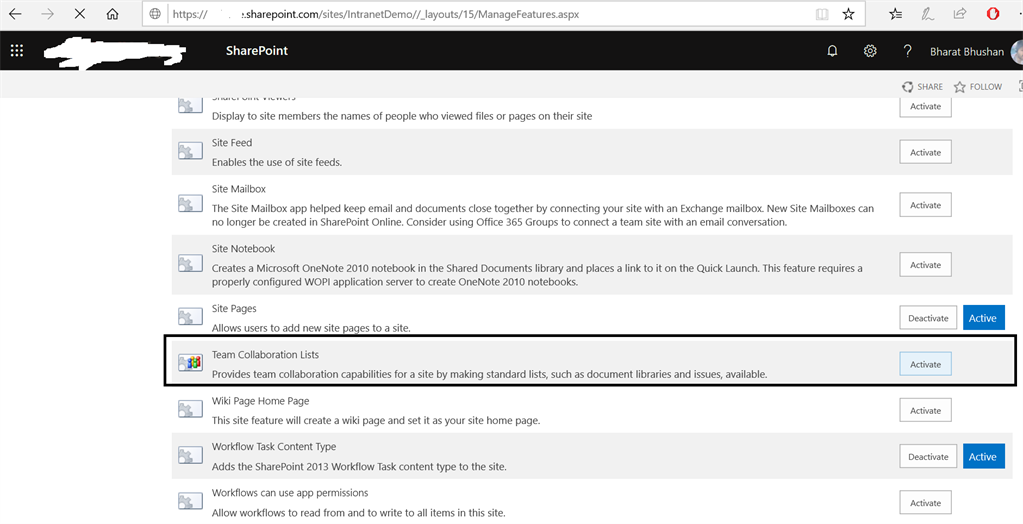 The latest news on all the sections that we refer to is presented automatically. New Sites/Subsites/Pages/Lists/Libraries when created also gives the option to include in the latest news for presenting and also navigational link can be included. We can also share the news through mail or copy the link option to other users.