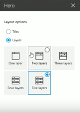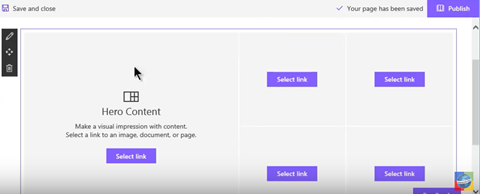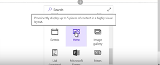 The Hero Webpart Edit button editing is a good example to display 5 pieces of Content in a highly visual layout in tiles and layers style. We have further options of redefining pre-available templates, links can be added for quick navigations to those images with titles/headlines.