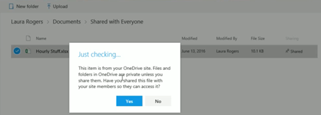 OneDrive file sharing asks a popup question before sharing on Hero WP.