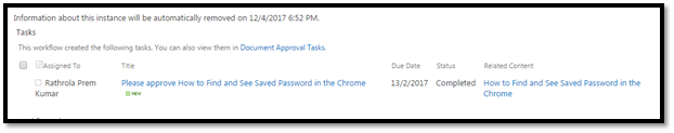 Now click on Title to approve the workflow and in next page click on approve button. That’s it.
