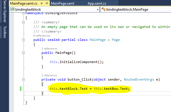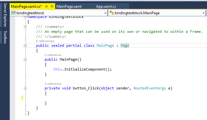 Step 2: Double click on Button in MainPage.xaml,this will open MainPage.xaml.cs.