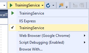 8. Well, we are done with web service using REST(i.e. HttpGet, HttpPost etc) and you can deploy this service either in IIS or as locally from VS, select the service name and click on run green button. You must be finally getting the url for this service something like