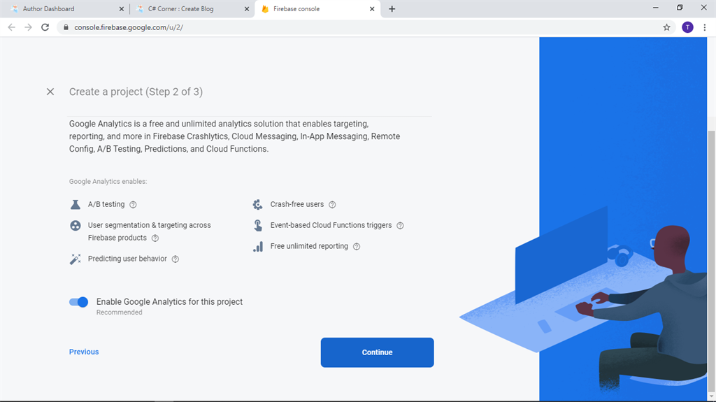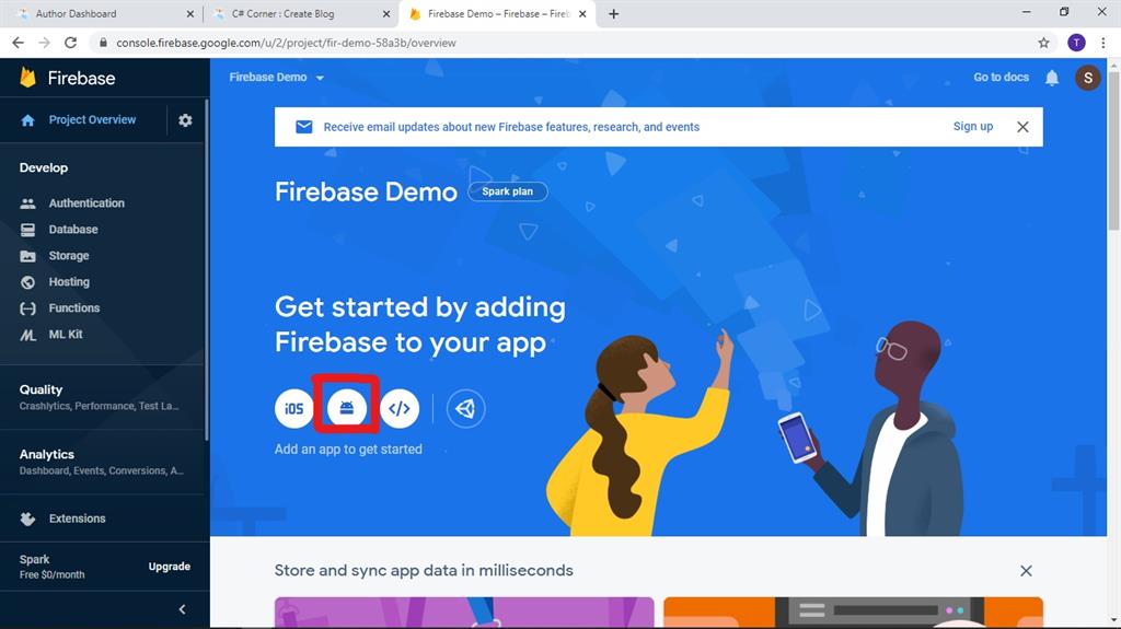 1. Go to the Firebase website and sign in with your mail ID.