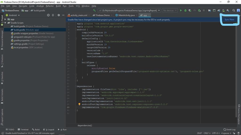 Press Sync now that appears in the Android Studio IDE.