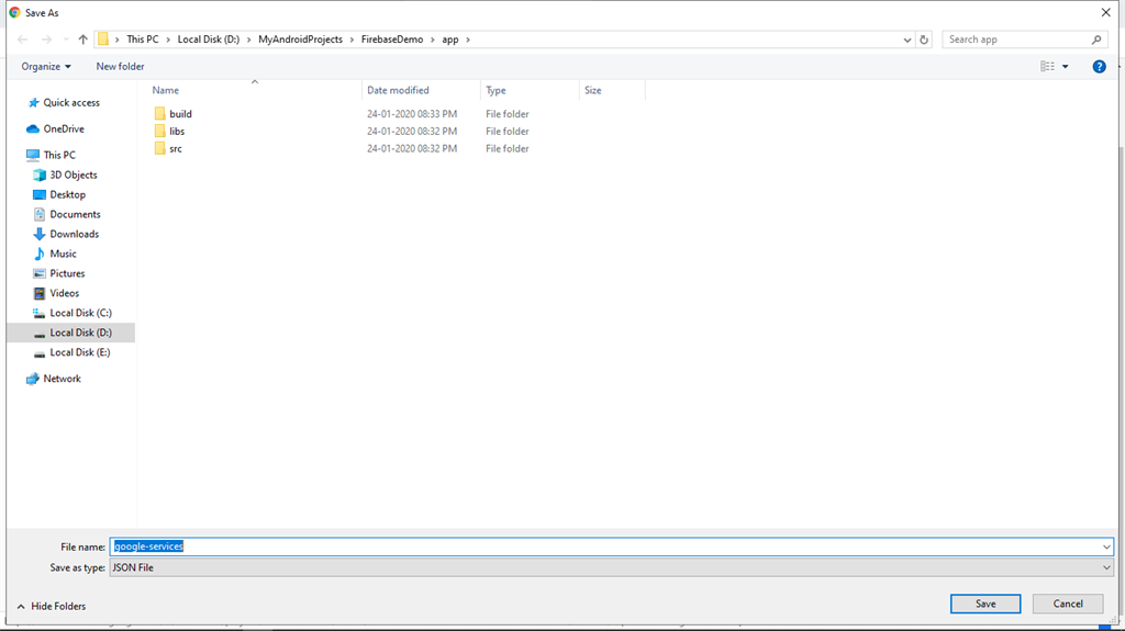 5. Download Config file "google-services.json" directly to your Android app module root directory or else download and move it into your Android app module root directory.