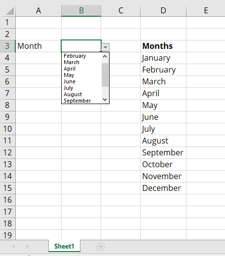 First create your list which you want to use in Drop-Down. It may be Numeric, Alphabetic, and Symbols. Let’s create a list of Months January, February, March, April, may, June, July, August, September, October, November and December.