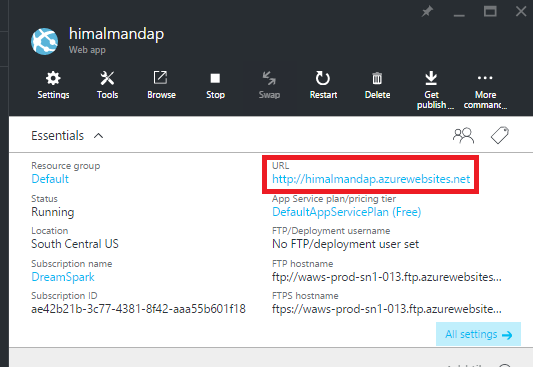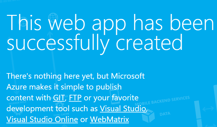 CONGRATULATIONS! You have succesfully created a web app in Azure. Now to deploy the custom website files and pages in Azure through FTP, go through the link below: