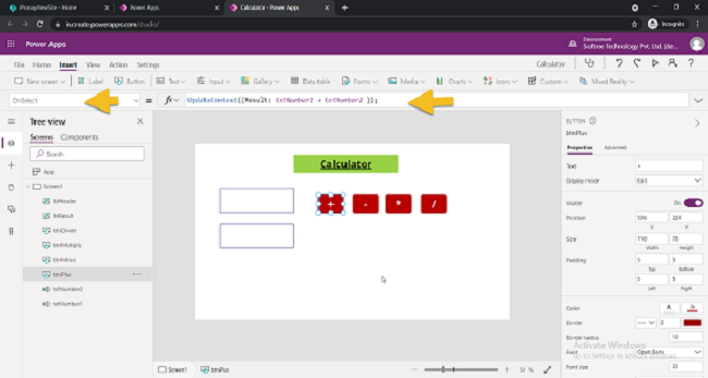 - For * button -> UpdateContext({Result: txtNumber1 * txtNumber2 });