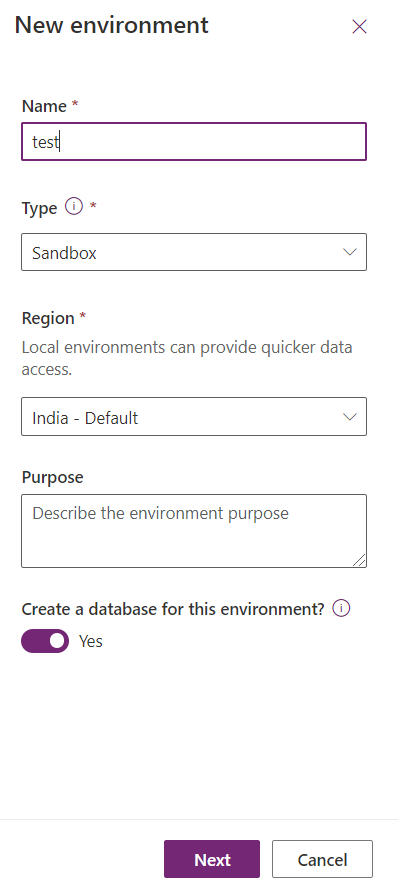 If you want to create a new Environment Toggle the Button ON.