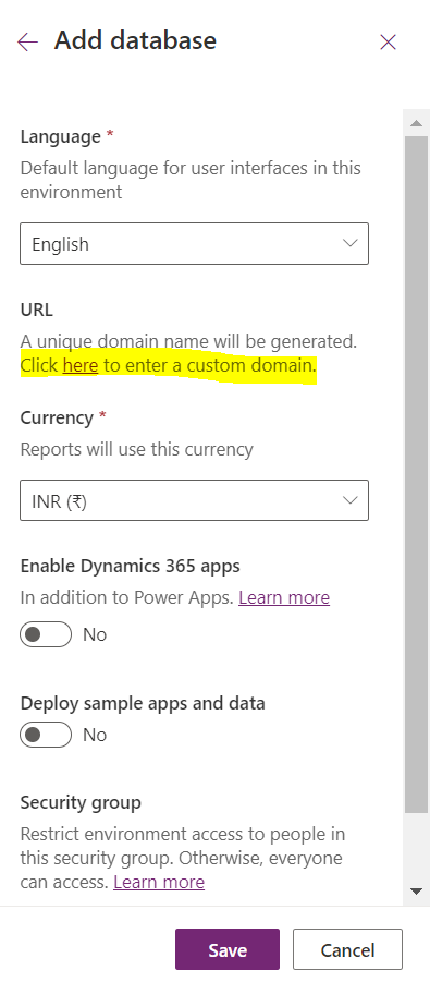 Click on click here (hyperlink) then it will navigate to another page for creating a new dataverse environment.
