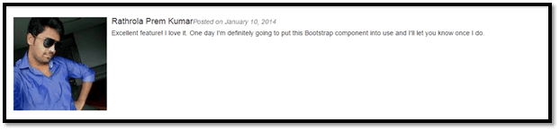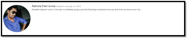 If you want to show your profile description shortly with your image such as tweets, blog comments etc, you can do this easily, using introduced Bootstrap media component, as shown below.