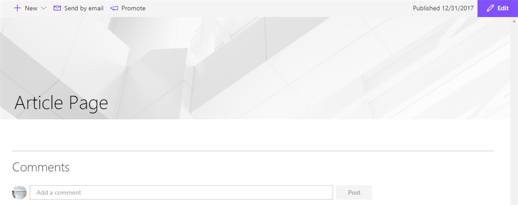 - PS:> Add-PnPClientSidePage -Name “Article Page”