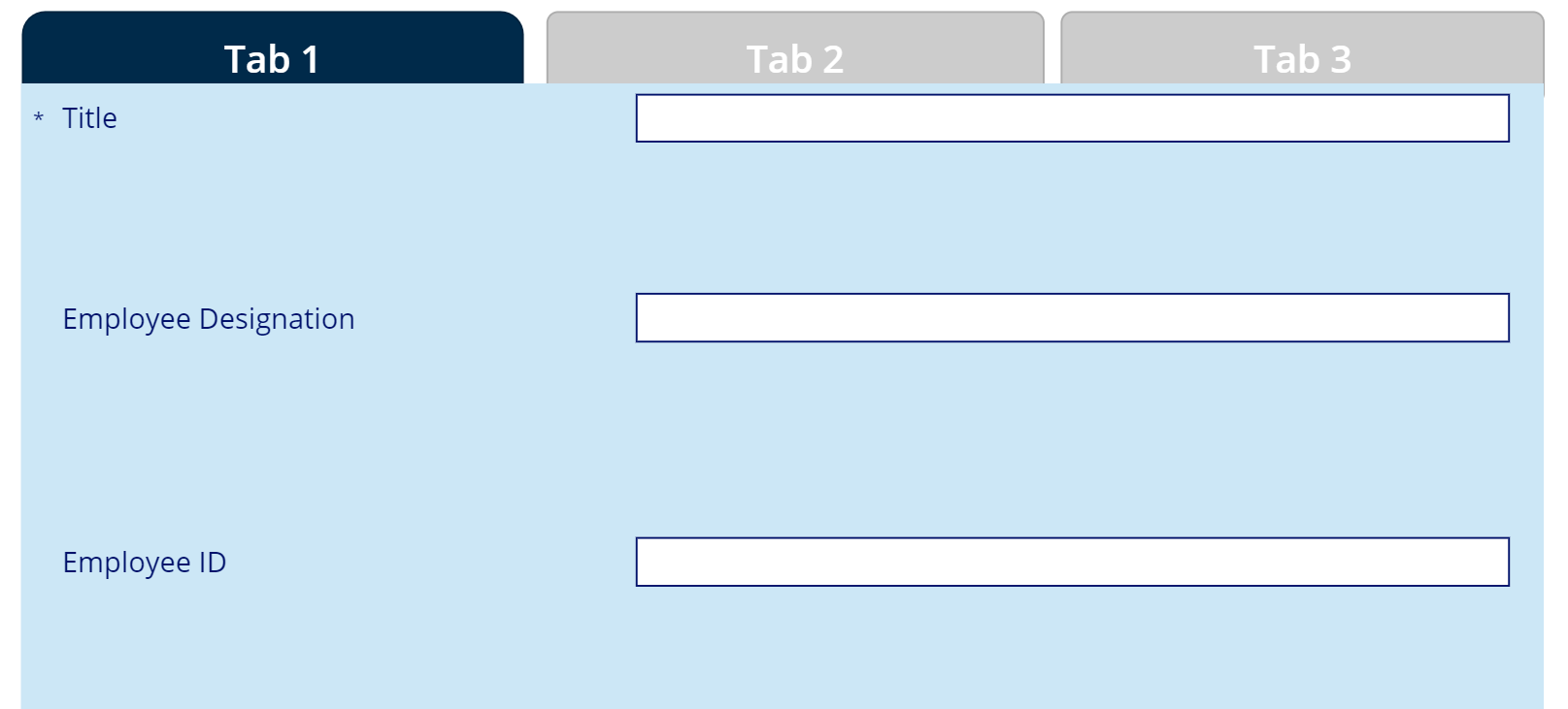 Considering our form will have 3 tabs,