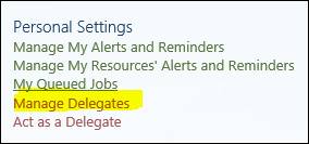 - Click Manage Delegates under Personal setting on the first option of PWA setting.