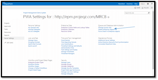 When you click on Project, you can see Project online landing page which is PWA (Project Web App) site as shown below.