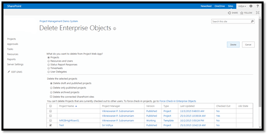 Select the project you want to delete and click the Delete button as shown in the above Screenshot. The project will be deleted successfully.