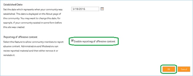 - Mark Enable reporting of offensive content checkbox and click on OK button.