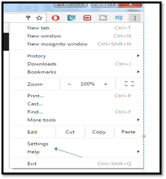 Click on Chrome setting at top right corner.