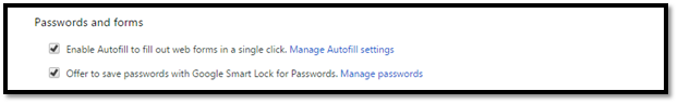 Afterwards, look for the option called password and forms, as shown below.