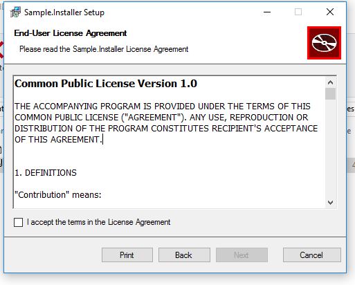 sing wix# also, you can specify your external .rtf license agreement file.
