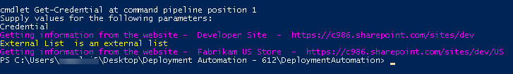 - $siteURL="https://c986.sharepoint.com/sites/dev"