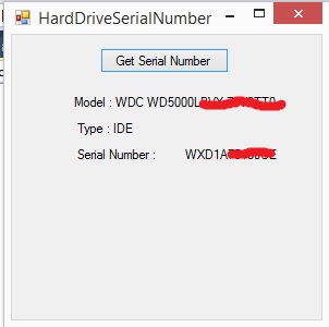 - hd.SerialNo= wmi_HD["SerialNumber"].ToString(); Serial Number