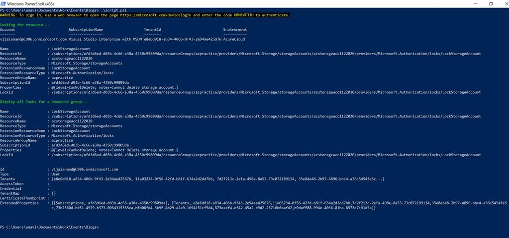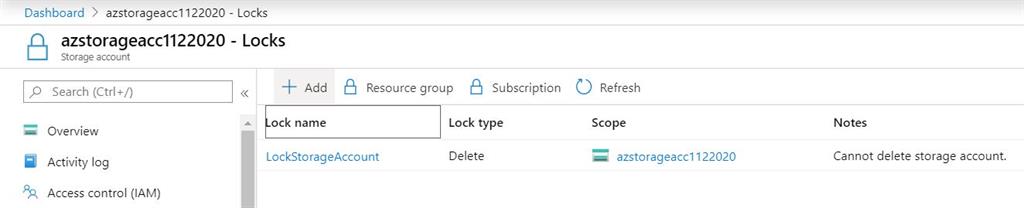 - Write-Host -ForegroundColor Green "Locking the resource..."