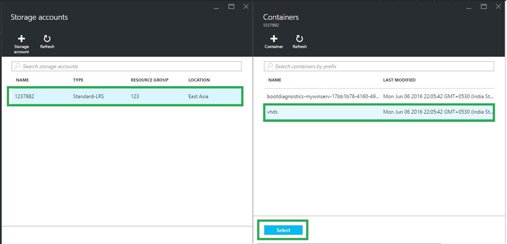 Step 7: Next, In the Backups blade, select the Backup destination. You must select an existing storage account and container.