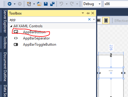 - Go to Mainpage.xaml,drop a Appbar button from toolbox to grid.