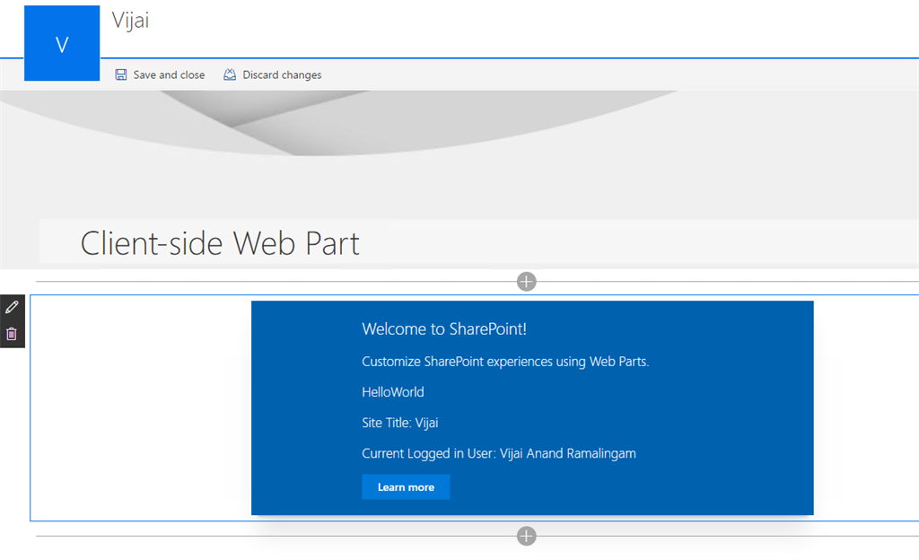 After few minutes, app will be installed. Navigate to the page where you want to add the client-side web part. Edit the page and add the client-side web part.