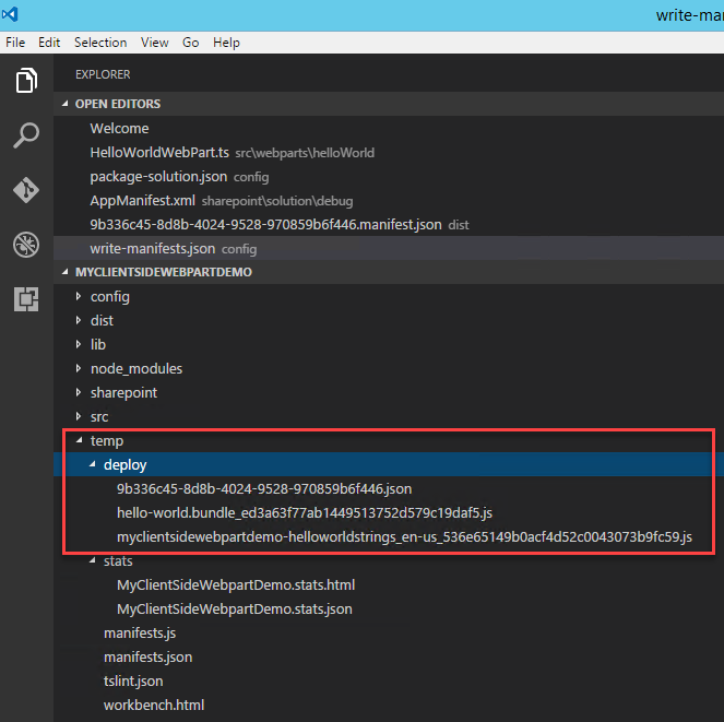 Execution of above command will create the output files to temp/deploy folder as shown below. These are the files that have to be uploaded to a SharePoint document library.