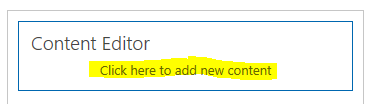 - Now, you see Text "Click here to add new content" on Content Editor WebPart. Click on this link.