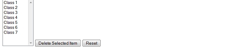 For these add listbox inside body tag and add two button Delete Selected Item and Reset