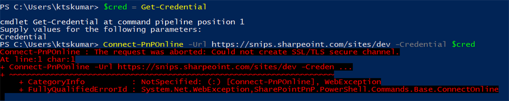 When I tried to connect SharePoint Online through PnP PowerShell by using the below command.