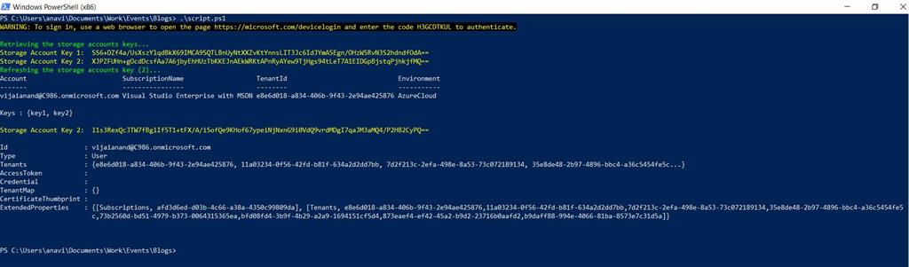 - Write-Host -ForegroundColor Yellow "Storage Account Key 1: " $storageAccountKey1