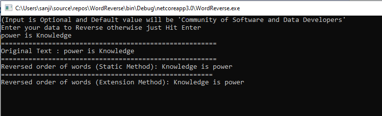 If the User does not enter anything, then the default value will be "https://www.c-sharpcorner.com." The following example is without input.