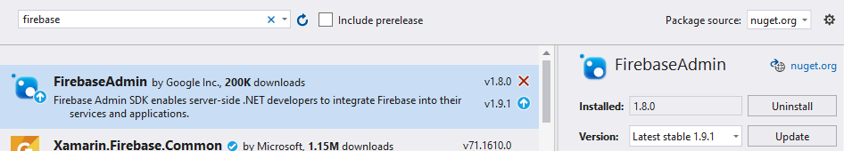 1. Add the Firebase admin .net SDK by NuGet